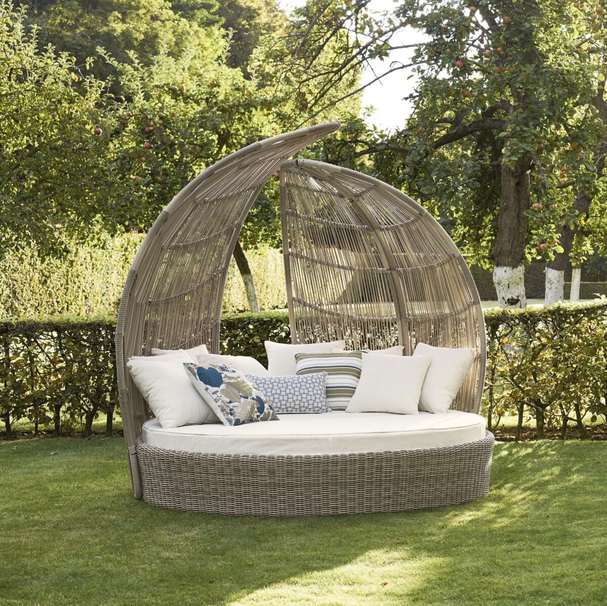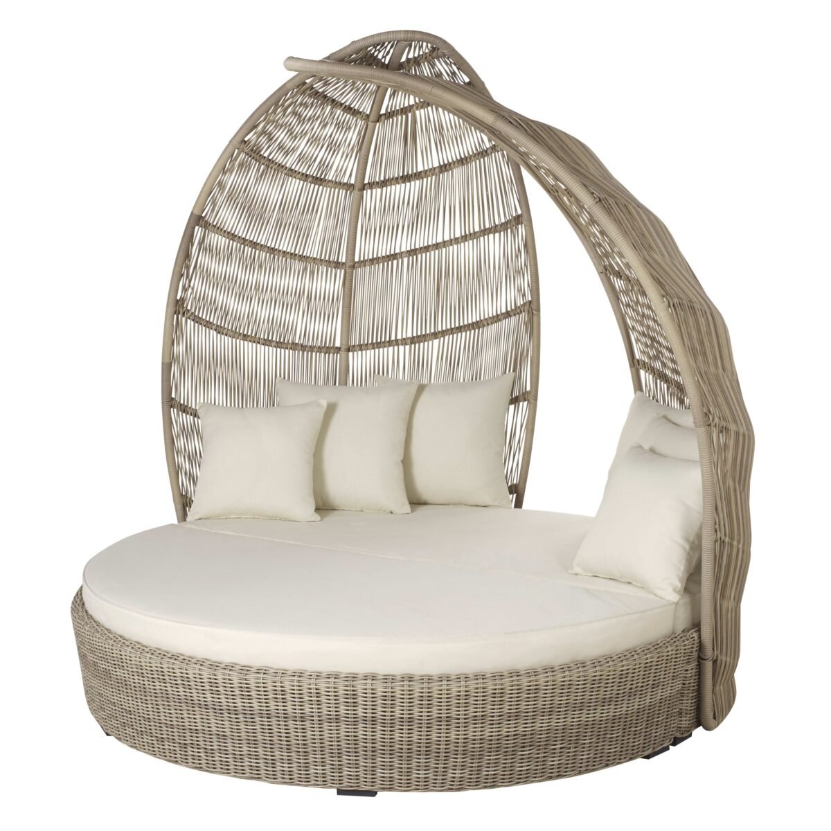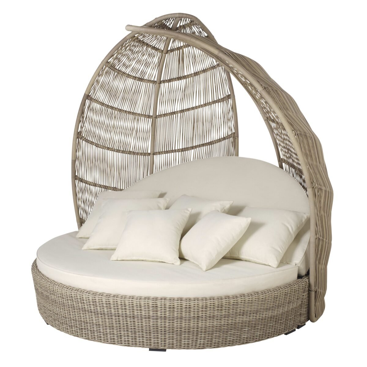 - Allongé confortablement entre ses coussins (résistants aux UV et déperlants) et protégé sous sa structure haute tressée, vous plongerez dans des instants de détente absolue.