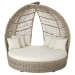 Lit extérieur rond en résine avec coussins