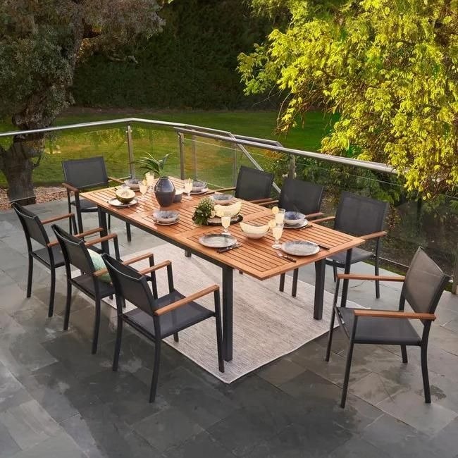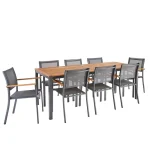 Cet ensemble est composé d’une table et de chaises en eucalyptus . Il est idéal pour 8 personnes, pour les repas mais aussi pour les moments de détente. Le bois d’eucalyptus certifié FCS donne un aspect design et naturel.