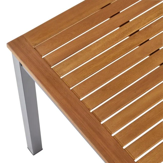 • Table en eucalyptus qui cache une rallonge papillon de 60 cm.
