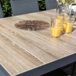 Laissez-vous séduire par le design élégant et ultra performant de ce salon de jardin 8 places : conçu en aluminium, il est parfait pour aménager votre terrasse et propose un look à la fois sobre et moderne avec son plateau en céramique qui imite le bois à la perfection.