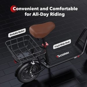 La trottinette iScooter i12 est un modéle spécialement conçu pour les trajets du quotidien, doté d’un panier et d’un siège ergonomique